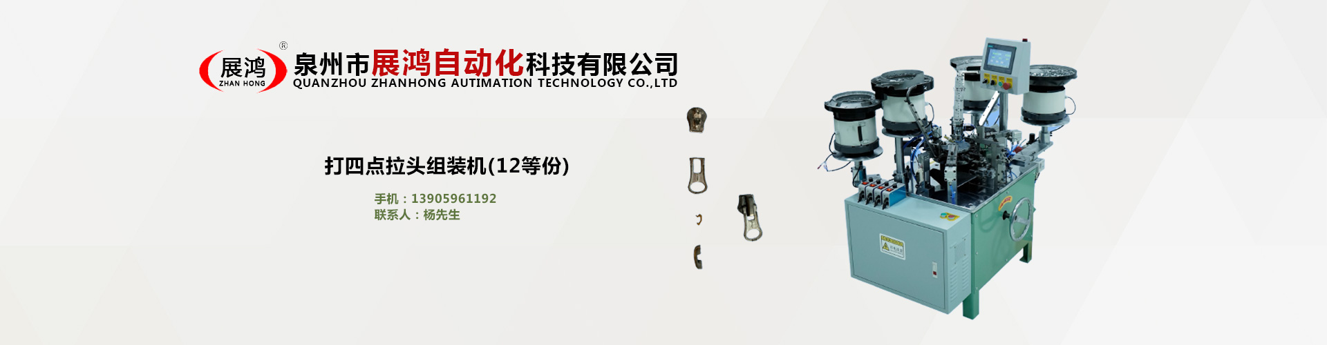 ??泉州市展鴻自動化科技有限公司始創(chuàng)于2003年,是一個集研發(fā)、制造、銷售為一體的現(xiàn)代化公司,專業(yè)從事研發(fā)、生產(chǎn)各類型號的全自動拉鏈頭裝配機(jī)。泉州市展鴻自動化科技有限公司始創(chuàng)于2003年,是一家集研發(fā)、生產(chǎn)、銷售、服務(wù)于一體的現(xiàn)代化拉鏈頭設(shè)備智能制造生產(chǎn)企業(yè):專業(yè)從事研發(fā)、生產(chǎn)各類型號的全自動拉鏈頭智能裝配機(jī)。亦可根據(jù)不同客戶的需求,提供適合客戶自身需要的“私人定制”式專用拉鏈頭設(shè)備及自動檢測拉頭品質(zhì)一體機(jī)。泉州市展鴻自動化科技有限公司始創(chuàng)于2003年,是一家集研發(fā)、生產(chǎn)、銷售、服務(wù)于一體的現(xiàn)代化拉鏈頭設(shè)備智能制造生產(chǎn)企業(yè):專業(yè)從事研發(fā)、生產(chǎn)各類型號的全自動拉鏈頭智能裝配機(jī)。亦可根據(jù)不同客戶的需求,提供適合客戶自身需要的“私人定制”式專用拉鏈頭設(shè)備及自動檢測拉頭品質(zhì)一體機(jī)。